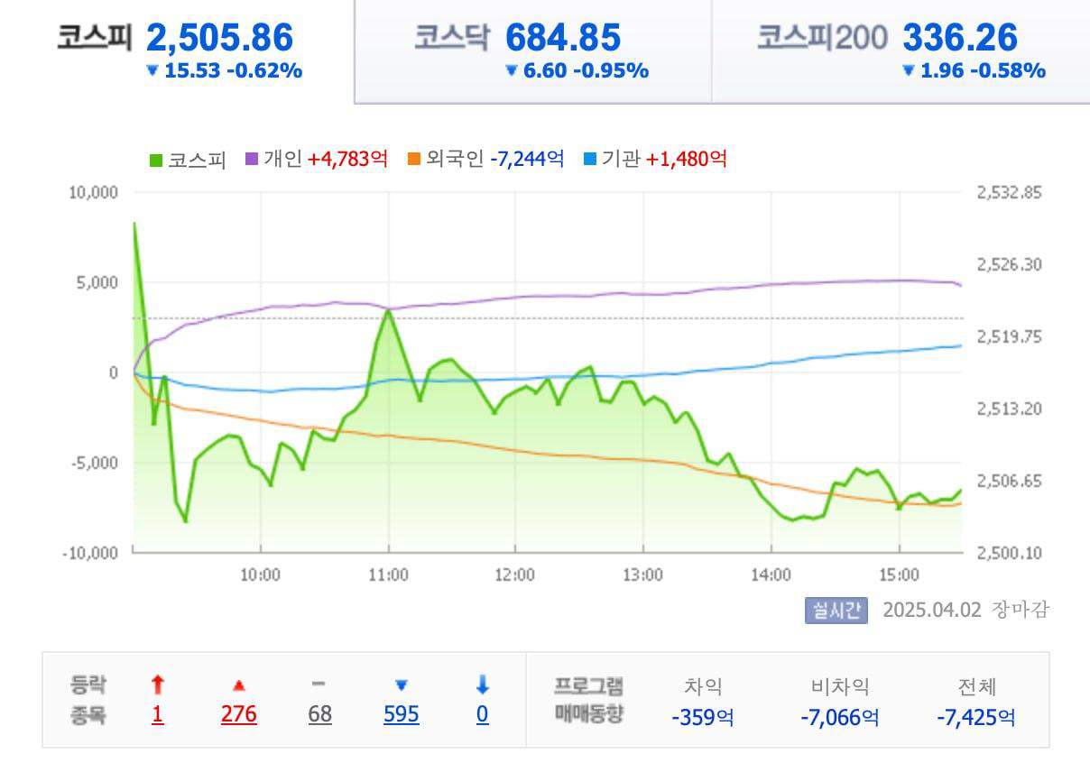시장에서는 트럼프의 관세 정책 발표 “전야 상태”에 접어든 것으로 보입니다.