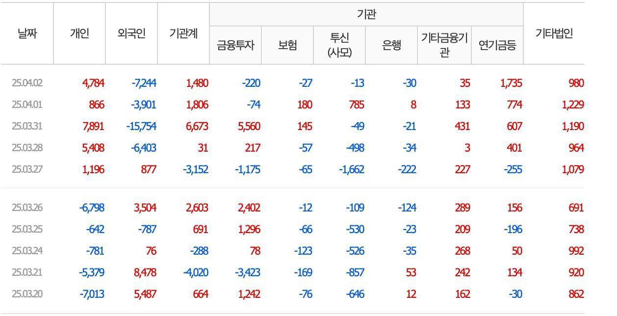 지난 몇 개의 거래일 자금 흐름 데이터를 보면,