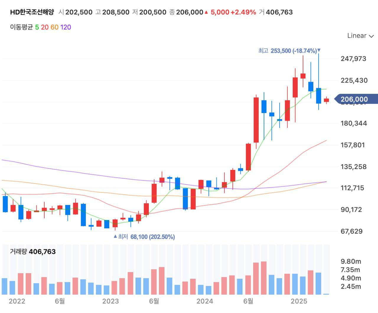 전체 상승폭은 약 120%에 달했습니다.