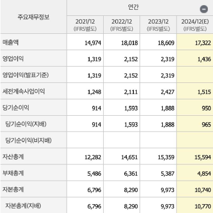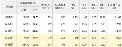 2024 년에는 영업이익과 순이익 모두 하락할 것으로 예상되나, 2025 년에는 다시 상승세를 보이며 회사매출이 역사상