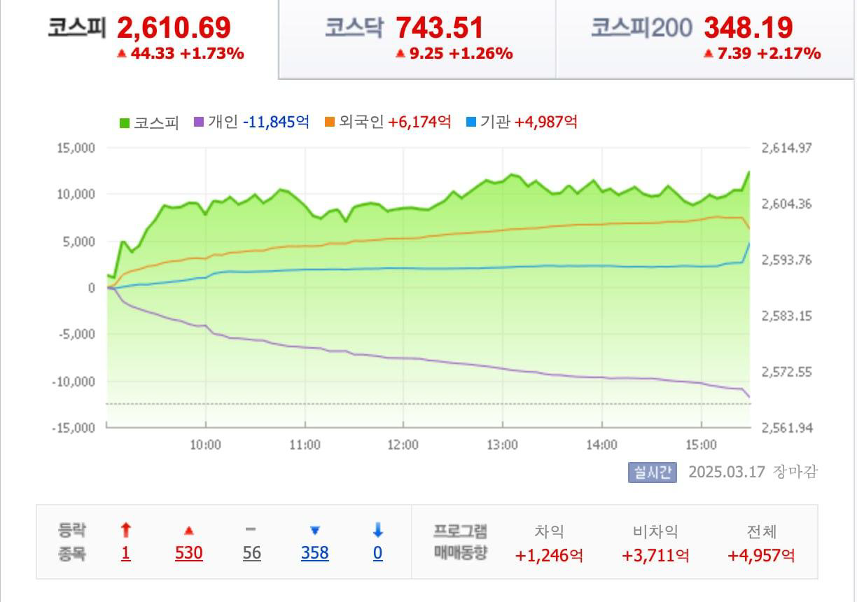 자금 흐름을 종합적으로 보면 외국인과 기관의 매수세가 강했던 반면, 개인 투자자는