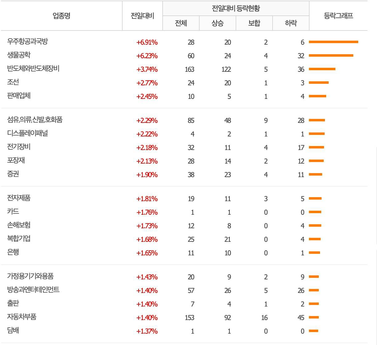 국방, 조선, 바이오 및 의료와 같은 위험회피 성격을 가진 업종이 대부분이었습니다.