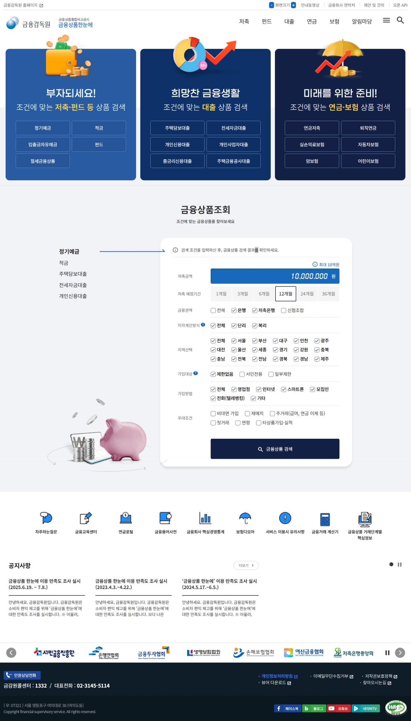 금융감독원 금융상품통합비교공시 금융상품한눈에